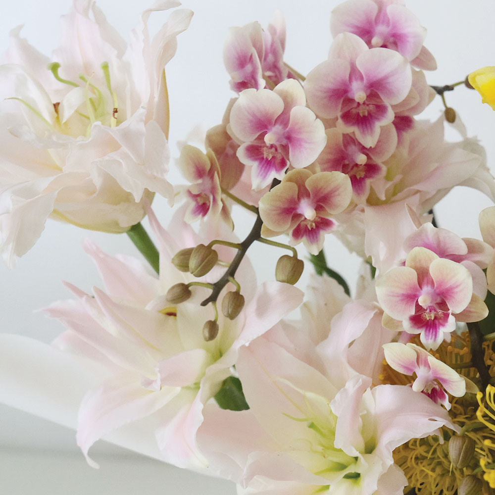 Pink Over Ochre is a study in balance and intention – where soft blush hues meet warm, golden depth. Structured in form and refined in palette, this arrangement is designed with clarity and control, allowing each element to hold its place with purpose.